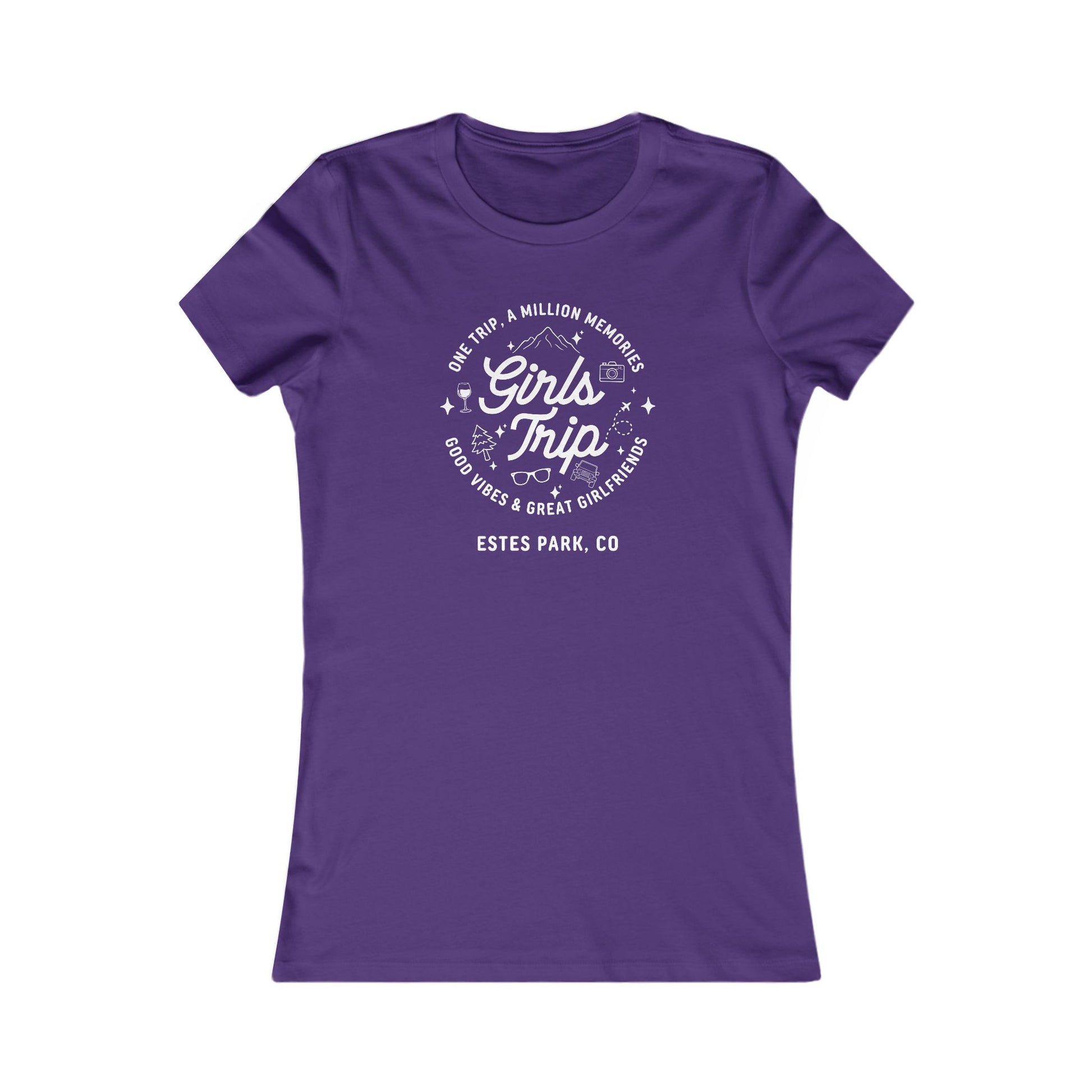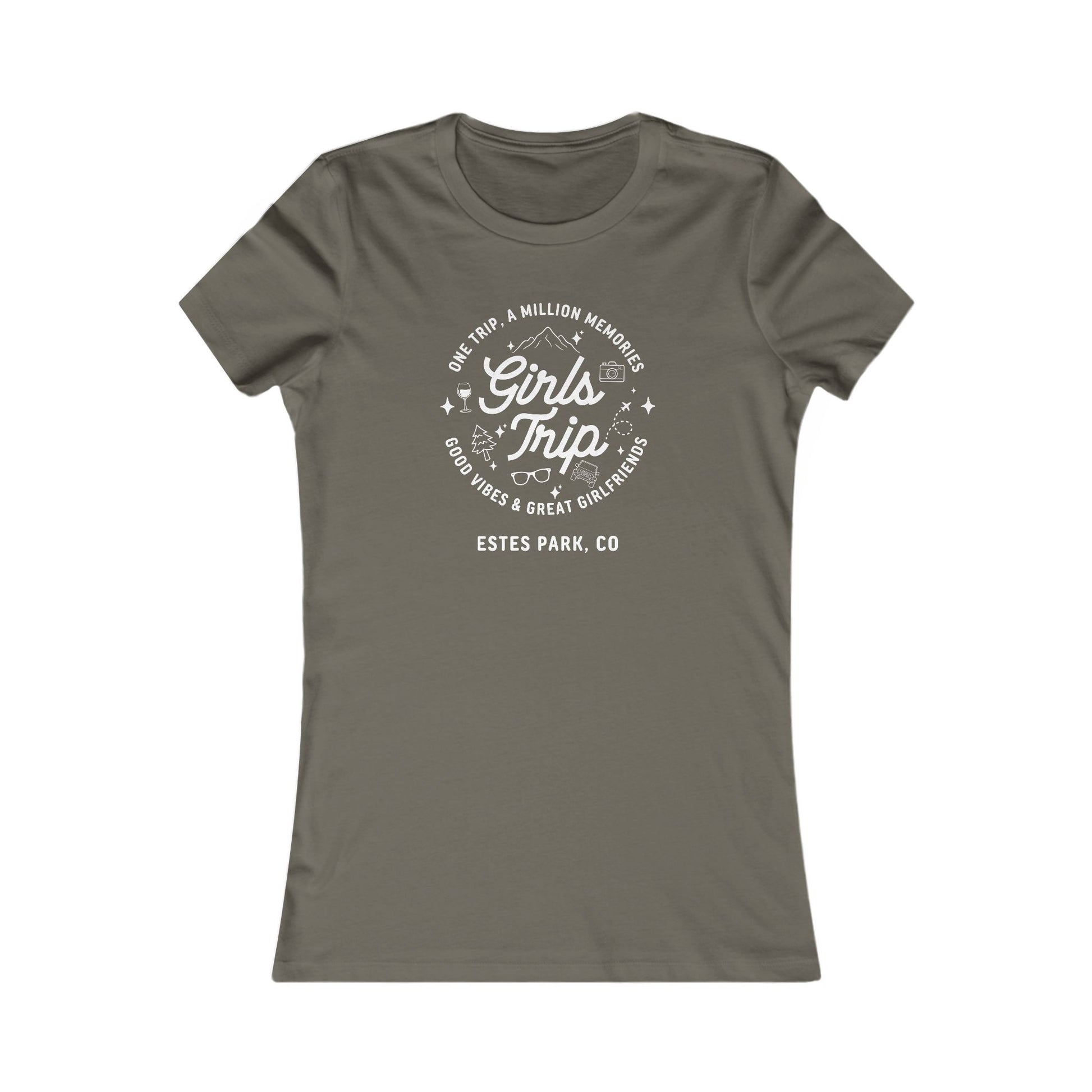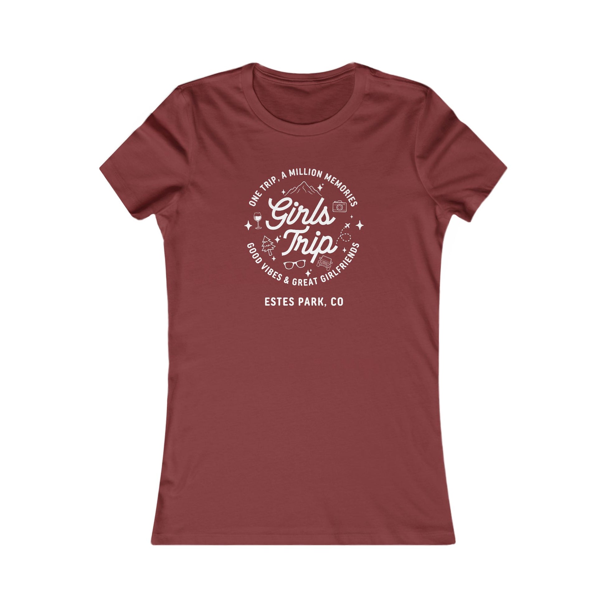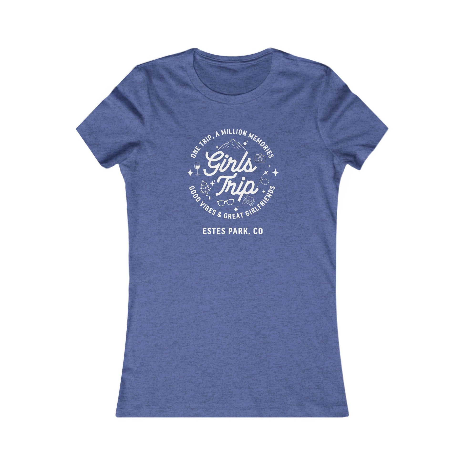 A stylish and comfortable tee perfect for a girls' trip to Estes Park. This tee gives off a fun and adventurous vibe, making it ideal for women looking to make memories. Perfect for a getaway with friends or family, this tee is a must-have for any travel-loving individual.